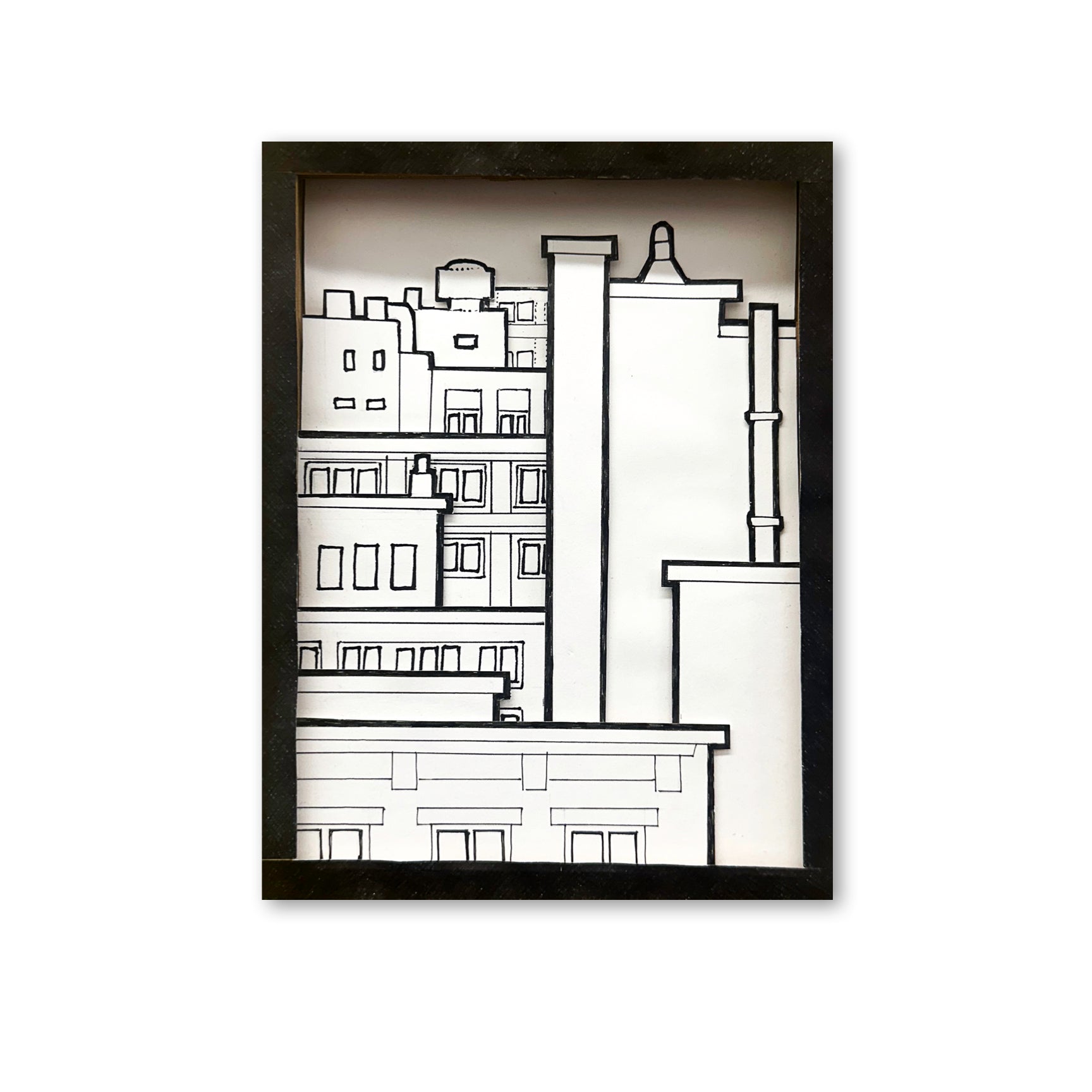 Medium: MetroCard bas relief/collage, colored pencil, pen and ink, cut paper